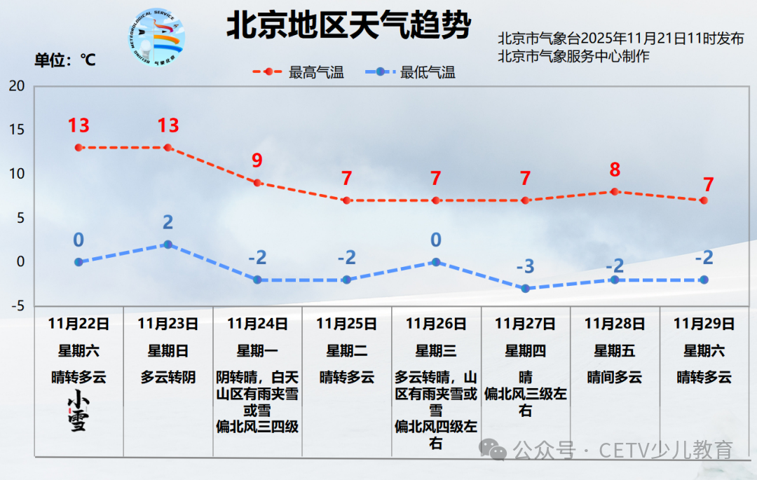 受多股冷空气影响,下周一(24号)和周三(26号)山区有弱雨雪出现,同时下周气温也会整体下一个台阶,白天最高气温降至6~7℃,夜间的最低气温也会降至冰点以下,且期间多北风,在大风的加持下风寒效应会十分明显。