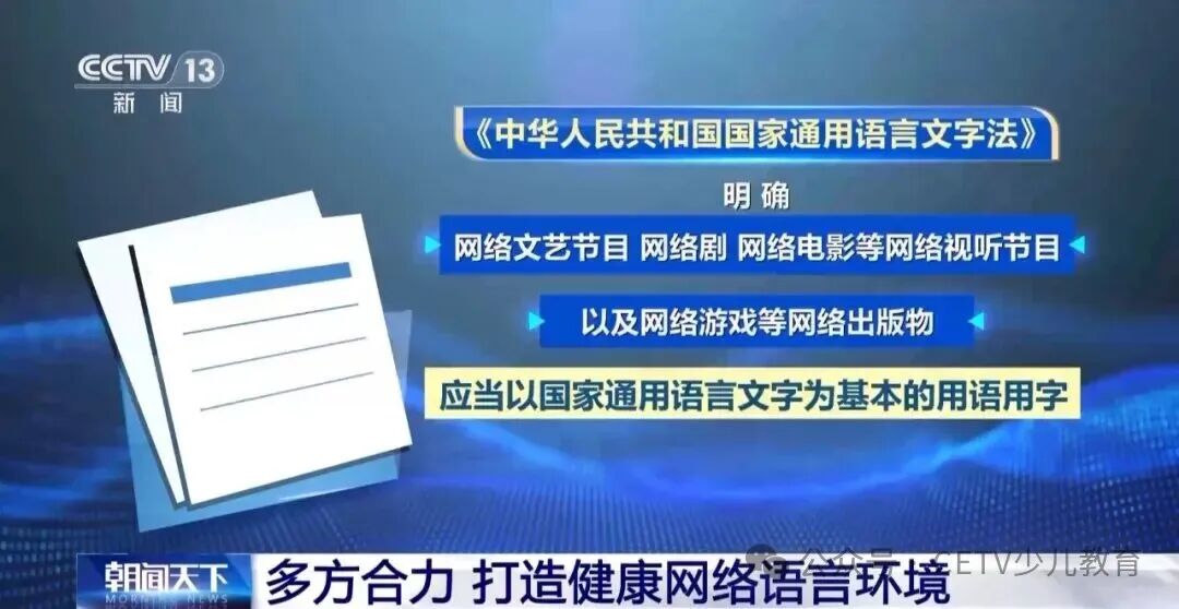 今年1月1日起,新修订的国家通用语言文字法正式施行,增加了对网络空间用语用字的规范要求,明确网络文艺节目、网络剧、网络电影等网络视听节目以及网络游戏等网络出版物应当以国家通用语言文字为基本的用语用字;明确政府主办的或者提供社会公共服务的门户网站、移动应用程序等互联网信息平台中使用的国家通用语言文字应当符合国家的规范和标准,为网络空间用语用字“明要求”“立规矩”。