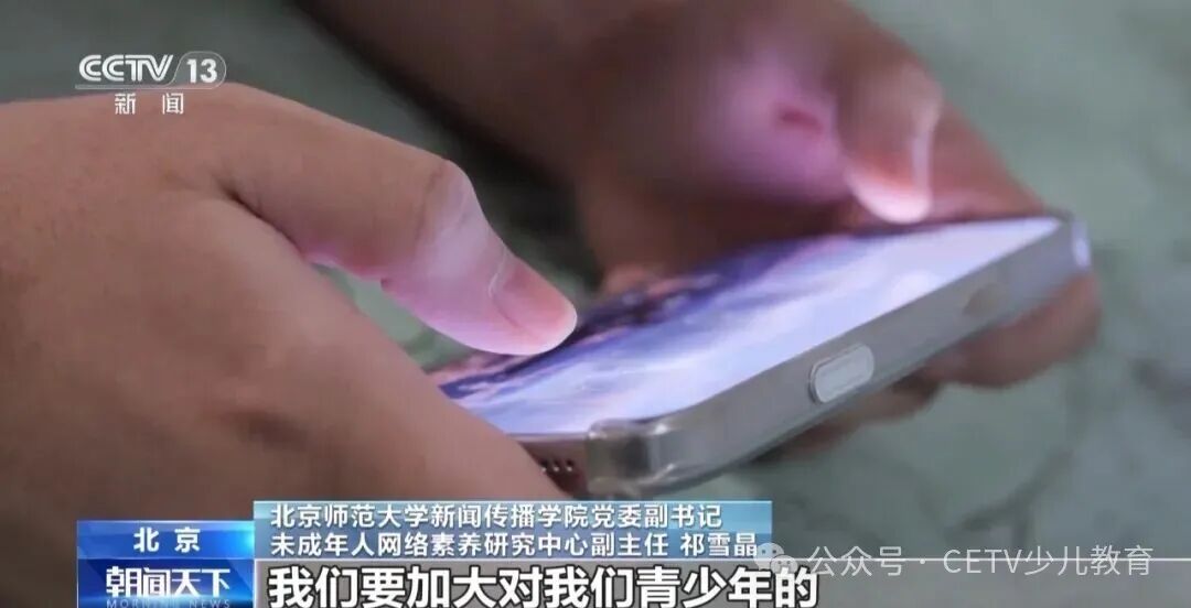北京师范大学新闻传播学院党委副书记、未成年人网络素养研究中心副主任祁雪晶:要加强家校社的联动,全社会也要有协同的义务,比如说互联网平台,应该在平台的内容和推荐机制上,要加大对青少年的良性内容的投入,也要加强对网络生态的治理,净化网络空间,确保优质内容能够供给青少年,同时避免青少年受到网络风险内容的侵蚀。