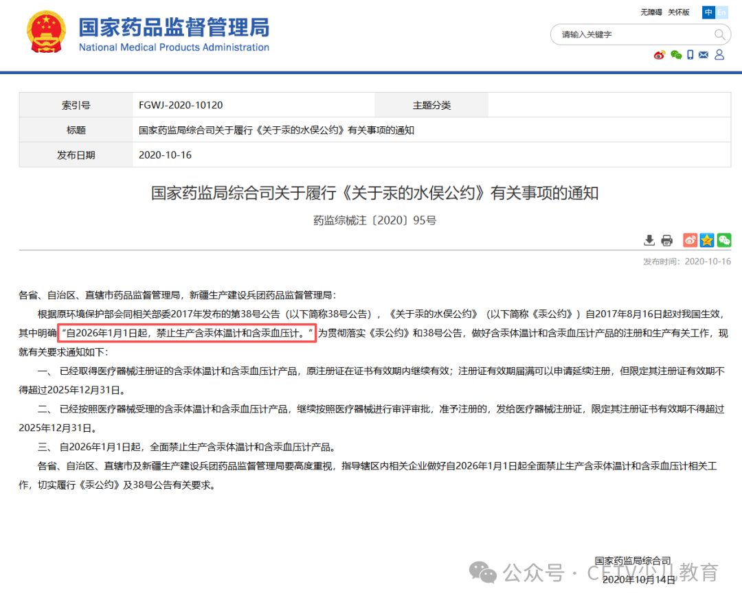 此前,国家药监局发布通知——“自2026年1月1日起,禁止生产含汞体温计和含汞血压计”。这意味着,曾经广泛使用的水银温度计将逐步告别现实,成为历史。