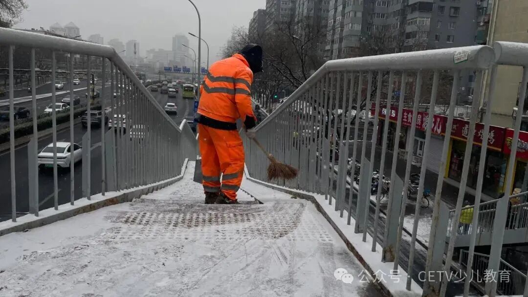雪后北京,环卫工人们身着橙黄色的工作服,在洁白的雪地里显得格外醒目。用他们的辛勤与汗水,为城市的正常运转保驾护航。